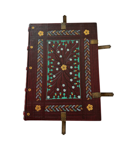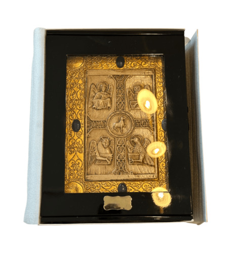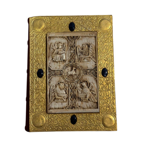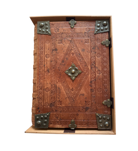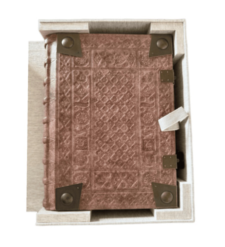 Ein einzigartiges Merkmal sind die beiden erhaltenen Buchdeckel aus vergoldetem Silber, verziert mit filigranen Sonnenstrahlen und fünf plastischen Löwenköpfen. Dieses Evangeliar vereint höchste Schreibkunst, Miniaturmalerei und Goldschmiedekunst und zählt zu den bedeutendsten Prunkhandschriften des 14. Jahrhunderts.