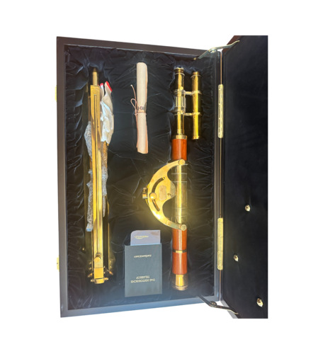 Das Meisterwerk ruht auf einem eleganten Messingfuß mit Meridian und spiegelt die Verbindung von kartographischer Tradition und luxuriösem Design wider. Es verkörpert die lange Geschichte des Columbus-Verlages, der seit 1909 zu den führenden Globenmanufakturen der Welt gehört.