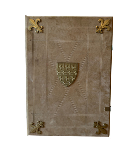 Für den Dauphin, den Thronfolger Frankreichs, bestimmt, entfaltet die Handschrift auf 128 Seiten eine verschwenderische Pracht. Jede Seite ist reich illuminiert: architektonisch gerahmte Szenen, leuchtende Farben, ausdrucksstarke Figuren und fein schimmerndes Gold zeugen von höchster Kunstfertigkeit.