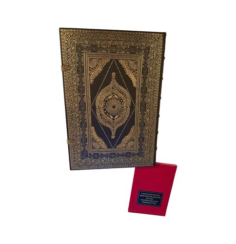 Der großformatige Band (27 × 36 cm) ist in Leder gebunden, mit Goldschnitt, Prägung und reicher Ornamentik versehen. Über 300 farbige Miniaturen aus romanischen und gotischen Codices illustrieren den Text und lassen die spirituelle und künstlerische Welt des Mittelalters neu aufleben.
