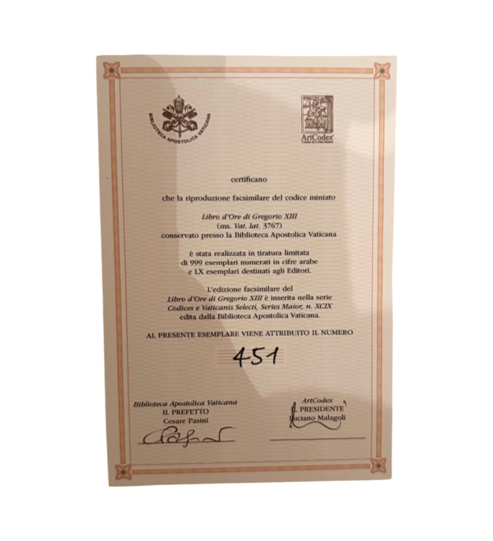 Das in der Biblioteca Apostolica Vaticana aufbewahrte Gebetbuch der Päpste zählt zu den kostbarsten Handschriften der späten Renaissance. Es gehörte ursprünglich Papst Gregor XIII. (1502–1585), dem Reformpapst, der mit der Einführung des Gregorianischen Kalenders (1582) ein bis heute gültiges Zeitmaß schuf.