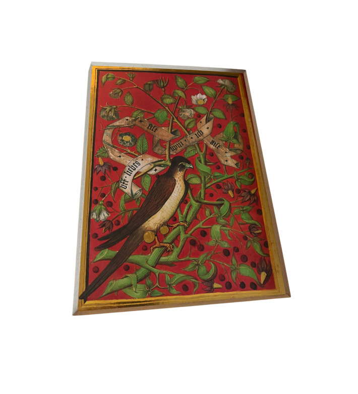 Der Liebesvogel aus dem Codex Pal. lat. 1632 verbindet Rosenzweig und Falke zu einer symbolischen Meditation über höfische Liebe und leitet Vergils Werke ein.