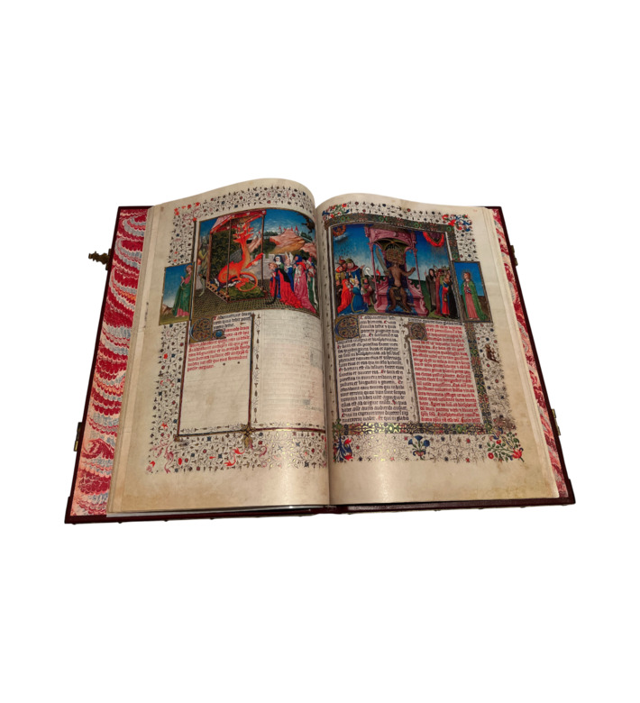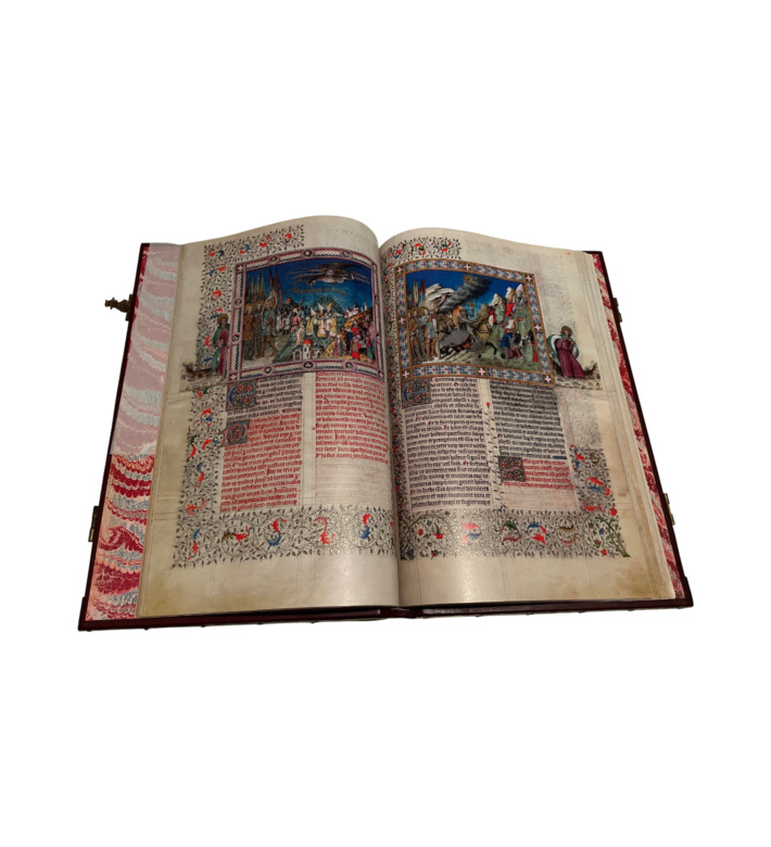 Die Apokalypse der Herzöge von Savoyen gehört zu den strahlendsten Bilderhandschriften des 15. Jahrhunderts. Das monumentale Werk entstand in zwei Schaffensphasen zwischen 1428 und 1490 und vereint die Handschrift mehrerer großer Meister der französischen Buchmalerei, darunter Jean Bapteur, Péronet Lamy und Jean Colombe. Im Auftrag Herzog Amadeus’ VIII. begonnen und von dessen Urenkel Karl I. vollendet, entfaltet der Codex ein dichtes Zusammenspiel aus Bild und Text: 97 Miniaturen, jede in ein präzise organisiertes Seitenschema eingebettet, übersetzen die Visionen der Johannesoffenbarung in eine kraftvolle Bildsprache der französischen Gotik.