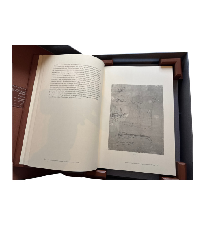 In präzisen Feder- und Silberstiftzeichnungen untersuchte er Muskeln, Knochen, Sehnen und Organe, erfasste den menschlichen Körper als komplexes System und verband naturwissenschaftliche Genauigkeit mit künstlerischer Sensibilität. Die Blätter zeigen Ganzkörperdarstellungen, anatomische Schnitte und Detailstudien – etwa zur Hand, zum Schädel oder zur Lage des ungeborenen Kindes im Mutterleib – und dokumentieren den Übergang von morphologischen zu physiologischen Fragestellungen.