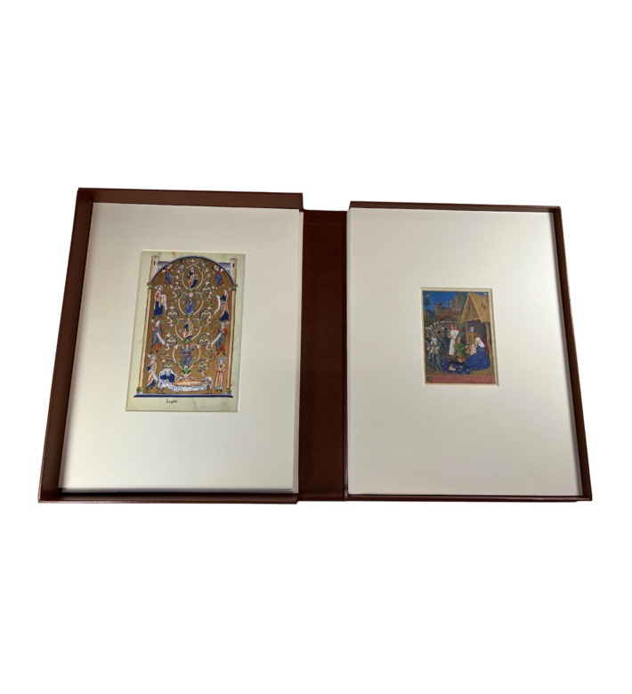 Die Auswahl Meisterwerke aus dem Musée Condé zeigt herausragende Blätter aus illuminierten Handschriften, darunter Arbeiten aus der Schule der Très Riches Heures du Duc de Berry, Buchmalerei des Hochmittelalters und frühe französische Druckkunst. Goldene Initialen, feine Miniaturen und leuchtende Farben veranschaulichen die Entwicklung der europäischen Buchkunst über mehrere Jahrhunderte hinweg.