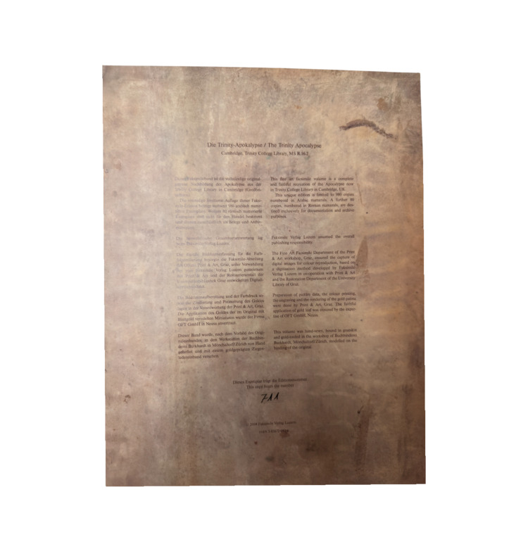 Die Trinity-Apokalypse ist ein Meisterwerk der Übergangszeit zwischen Romanik und Gotik und ein Schlüsselwerk der angelsächsischen Buchkunst.