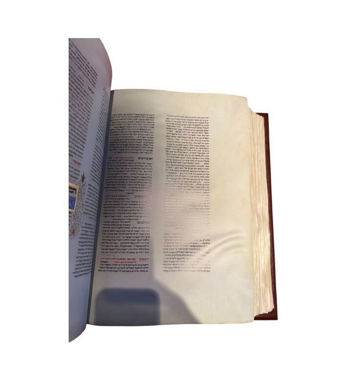 Die hier vorliegende Handschrift entstand um 1440 in Italien und überliefert die einzige vollständig erhaltene hebräische Übersetzung des Canon Medicinae von Natan ha-Meati. Der prachtvolle Codex aus der Schule von Ferrara umfasst über 1000 Seiten mit zehn ganzseitigen Miniaturen sowie hunderten Pflanzen- und Tierdarstellungen. Szenen aus Apotheke, Heilbädern und bäuerlichem Jahreslauf verbinden medizinisches Wissen mit reicher Bildwelt.