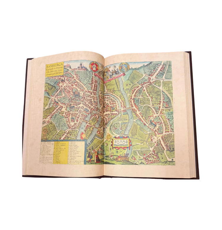 Die Civitates Orbis Terrarum, zwischen 1572 und 1618 in sechs Bänden erschienen, gilt als das bedeutendste Städtebuch der Frühen Neuzeit. Herausgegeben von Georg Braun und gestochen von Frans Hogenberg sowie später von Simon van den Neuwel, vereint das monumentale Werk über 600 Stadtansichten und -pläne aus Europa, Asien, Afrika und Amerika – ein Weltbild im Zeitalter der Renaissance.
