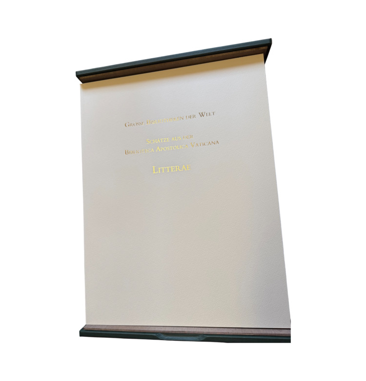 Die Biblioteca Apostolica Vaticana zählt zu den großen Gedächtnisorten Europas. In der Kassette „Schätze der Biblioteca Apostolica Vaticana – Litterae“ vereinen sich zwölf ausgewählte Einzelblätter aus literarischen, wissenschaftlichen und künstlerisch herausragenden Handschriften der päpstlichen Bibliothek.
