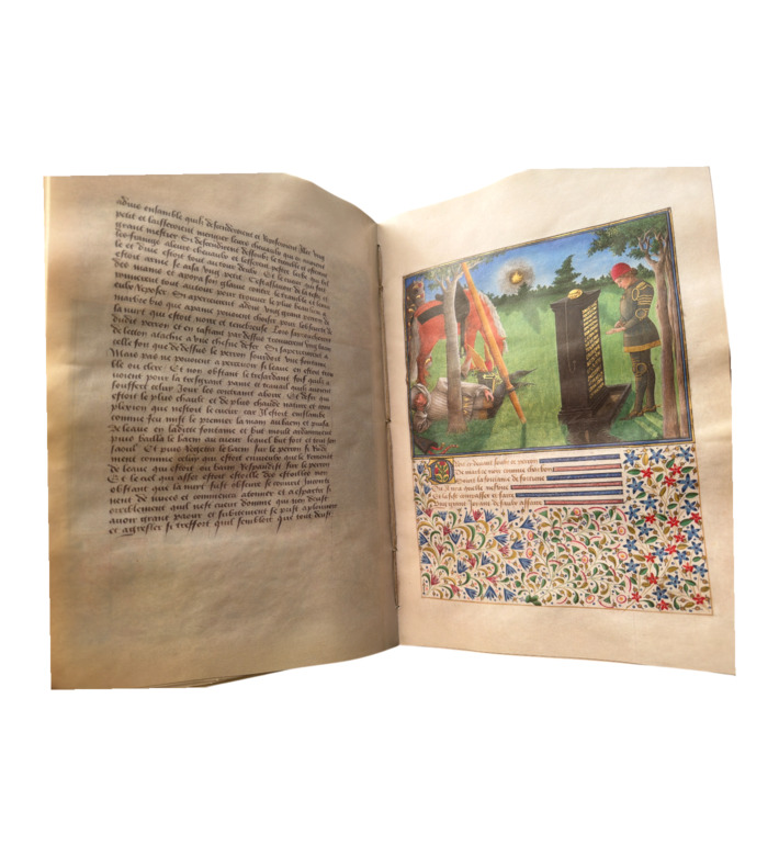 Der Text schildert in Traumform die Suche des personifizierten Herzens nach der unerreichbaren Douce-Merci. Alle Figuren erscheinen als Allegorien innerer Zustände, wodurch das Werk eine ungewöhnliche psychologische Dichte erhält. Die Ausstattung der Handschrift zählt zu den Höhepunkten der mittelalterlichen Buchmalerei. Die Miniaturen, ausgeführt von Barthélemy d’Eyck, zeichnen sich durch eine außergewöhnliche Lichtführung, fein abgestufte Schatten und eine enge Verbindung von Bild und Text aus.
