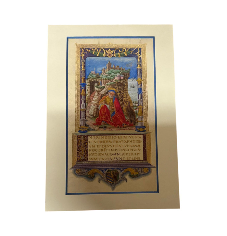 Um 1474 ließ Federico da Montefeltro, Herzog von Urbino, eines der kostbarsten Evangeliarien der Renaissance anfertigen. Aus diesem Werk stammen die vier prachtvollen Evangelistenporträts, die heute in der Vatikanischen Bibliothek unter der Signatur Urbinas Latinus 10 aufbewahrt werden.