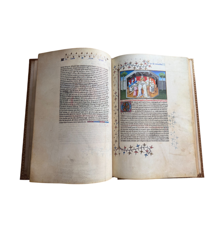 Das im Frankreich des 15. Jahrhunderts entstandene Buch der Wunder zählt zu den prachtvollsten illustrierten Handschriften seiner Zeit. Auf 192 Seiten mit 84 großformatigen Miniaturen entfaltet sich die Reiseerzählung des venezianischen Kaufmanns Marco Polo, dessen Berichte über Asien im Mittelalter europaweit Faszination auslösten. Die Illustrationen verbinden leuchtende Farbigkeit mit reichem Goldeinsatz und verleihen den geschilderten Begegnungen mit fernen Ländern und Völkern eine eindrucksvolle visuelle Präsenz.