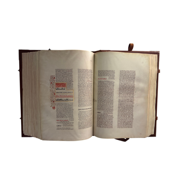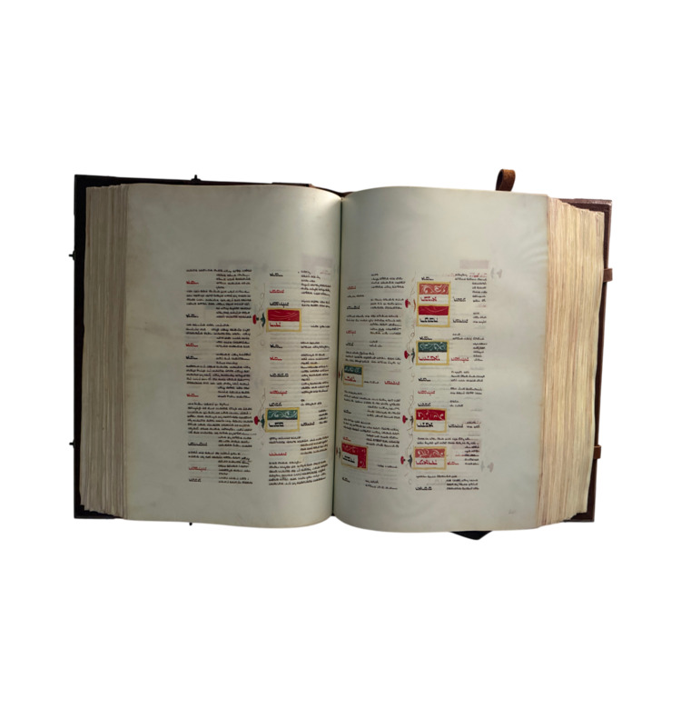 Die hier vorliegende Handschrift entstand um 1440 in Italien und überliefert die einzige vollständig erhaltene hebräische Übersetzung des Canon Medicinae von Natan ha-Meati. Der prachtvolle Codex aus der Schule von Ferrara umfasst über 1000 Seiten mit zehn ganzseitigen Miniaturen sowie hunderten Pflanzen- und Tierdarstellungen. Szenen aus Apotheke, Heilbädern und bäuerlichem Jahreslauf verbinden medizinisches Wissen mit reicher Bildwelt.