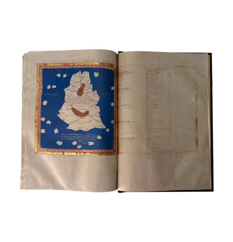 Die Geographia des alexandrinischen Universalgelehrten Claudius Ptolemäus (2. Jahrhundert) zählt zu den einflussreichsten Schriften der Antike. Sie enthält die mathematischen Grundlagen der Kartographie sowie die Koordinaten von über 8.000 Orten der bekannten Welt. Um 1400 in Italien wiederentdeckt und ins Lateinische übersetzt, wurde sie im 15. Jahrhundert mit prachtvollen Karten ergänzt und zu einem der bedeutendsten Atlanten der Renaissance.