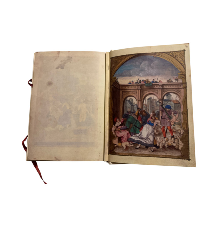 Mit seinen 44 meisterhaft ausgeführten Miniaturen, teils mit Blattgold und Silber verziert, stellt das Gebetbuch ein außergewöhnliches Kompendium religiöser Bildkunst der Renaissance dar. Szenen aus dem Leben Christi, Mariendarstellungen und Heiligengestalten verbinden sich zu einem farbgewaltigen biblischen Bilderzyklus.