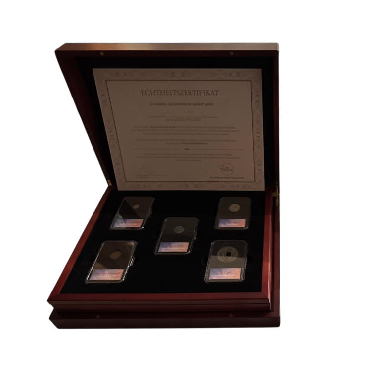 Die Geschichte der Seefahrt ist eine exklusive numismatische Sammlung, die die Entwicklung der maritimen Weltgeschichte über mehr als 2.200 Jahre hinweg dokumentiert. Sie vereint 20 historische Münzen, darunter 13 aus Silber, sowie zwei seltene Banknoten, die den technischen, kulturellen und wirtschaftlichen Fortschritt der Seefahrt widerspiegeln.