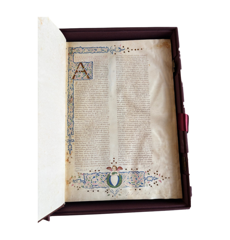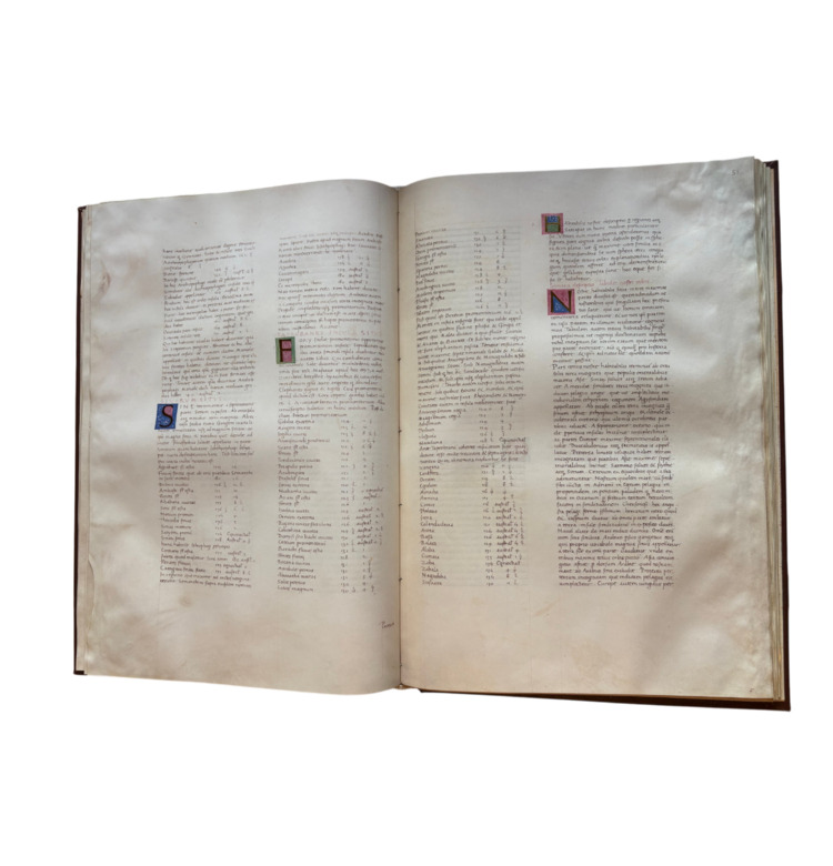Das für König Alfons V. von Aragon in Neapel entstandene Manuskript verbindet antikes Wissen mit der Kunst der Buchmalerei. Leuchtende Farben, reiches Blattgold, kunstvolle Initialen und symbolträchtige Darstellungen wie Engel mit Krone und Wappen machen es zu einem Meisterwerk höfischer Repräsentation.