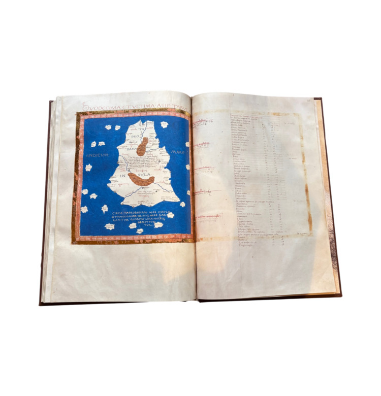 Die Geographia des alexandrinischen Universalgelehrten Claudius Ptolemäus (2. Jahrhundert) zählt zu den einflussreichsten Schriften der Antike. Sie enthält die mathematischen Grundlagen der Kartographie sowie die Koordinaten von über 8.000 Orten der bekannten Welt. Um 1400 in Italien wiederentdeckt und ins Lateinische übersetzt, wurde sie im 15. Jahrhundert mit prachtvollen Karten ergänzt und zu einem der bedeutendsten Atlanten der Renaissance.