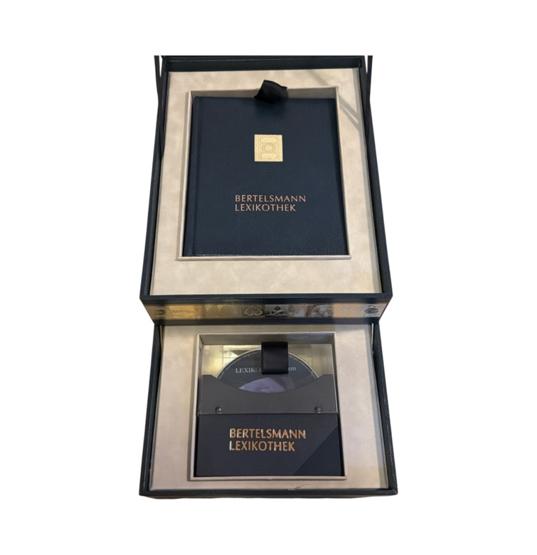 Die Präsentation in einer mit Samt ausgekleideten Kassette unterstreicht den repräsentativen Charakter des Ensembles. Das Zusammenspiel von Buch, Datenträger und Schuber steht exemplarisch für die Übergangsphase um die Jahrtausendwende, in der traditionelle enzyklopädische Wissenssammlungen zunehmend durch digitale Systeme ergänzt wurden.