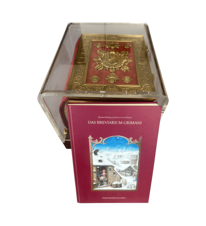 Das Breviarium Grimani zählt zu den größten Meisterwerken der flämischen Buchmalerei der Renaissance. Um 1510–1520 in Brügge und Gent entstanden, waren zahlreiche bedeutende Künstler an seiner Ausstattung beteiligt, darunter Gerard David, Simon Bening und Gerard Horenbout. Der monumentale Codex umfasst 1.664 Seiten, die vollständig illuminiert sind. Neben 80 großformatigen Miniaturen und kunstvollen Kalenderdarstellungen zieren fein gearbeitete Bordüren mit Blumen, Früchten, Insekten, Tieren und Architekturen die liturgischen Texte.