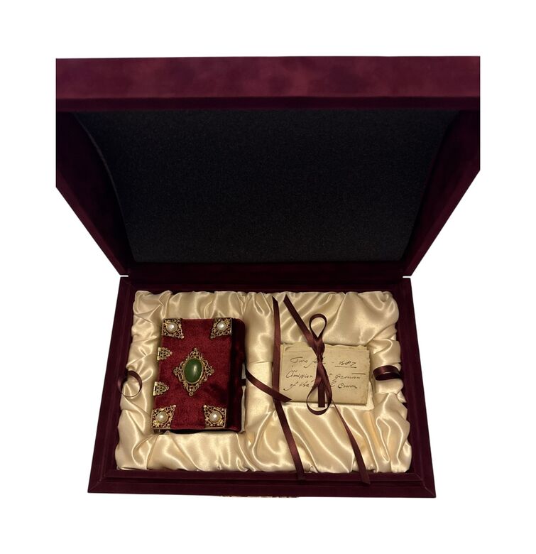 Dem Gebetbuch ist ein außergewöhnliches Dokument beigegeben: die Hinrichtungsurkunde Maria Stuarts, von Elisabeth I. am 1. Februar 1587 unterzeichnet. Nur wenige Tage später wurde Maria wegen angeblicher Beteiligung an einem Attentat hingerichtet.