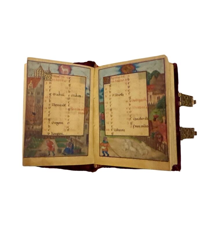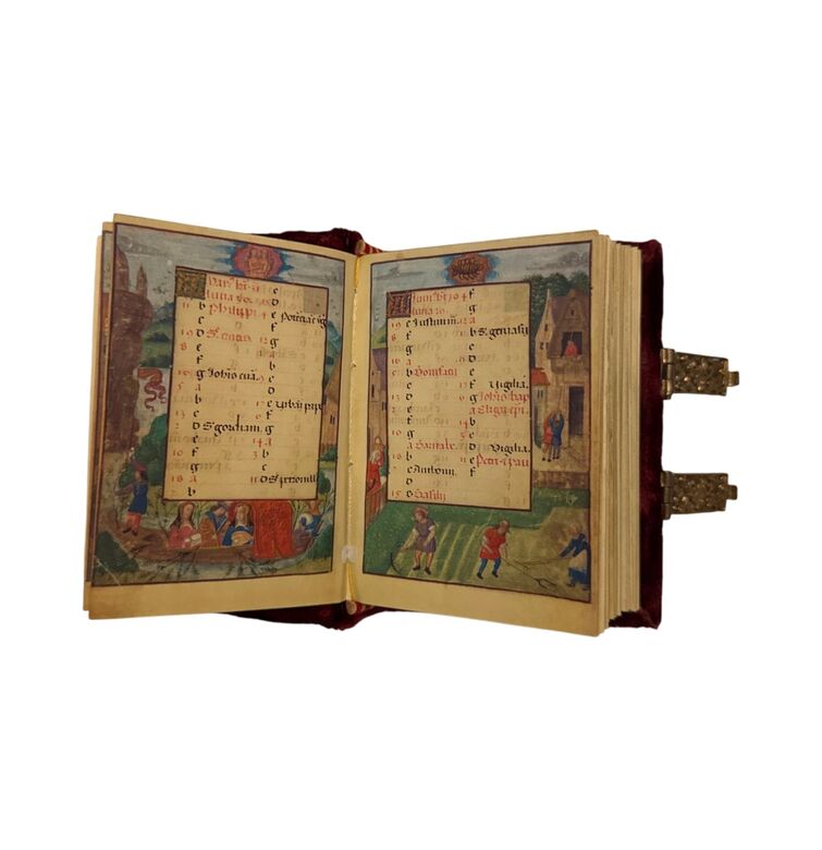Maria Stuart (1542–1587), Königin von Schottland und Frankreich, besaß ein prachtvolles Stundenbuch, das sie in ihren letzten Stunden begleitete. Gefertigt im frühen 16. Jahrhundert in Flandern, wohl in Gent oder Brügge, umfasst es 385 Seiten mit 41 ganzseitigen Miniaturen, kunstvollen Initialen und farbenprächtigen Rahmendekoren. Die leuchtenden Farben und Vergoldungen zählen zum Schönsten, was die flämische Buchmalerei dieser Zeit hervorgebracht hat.