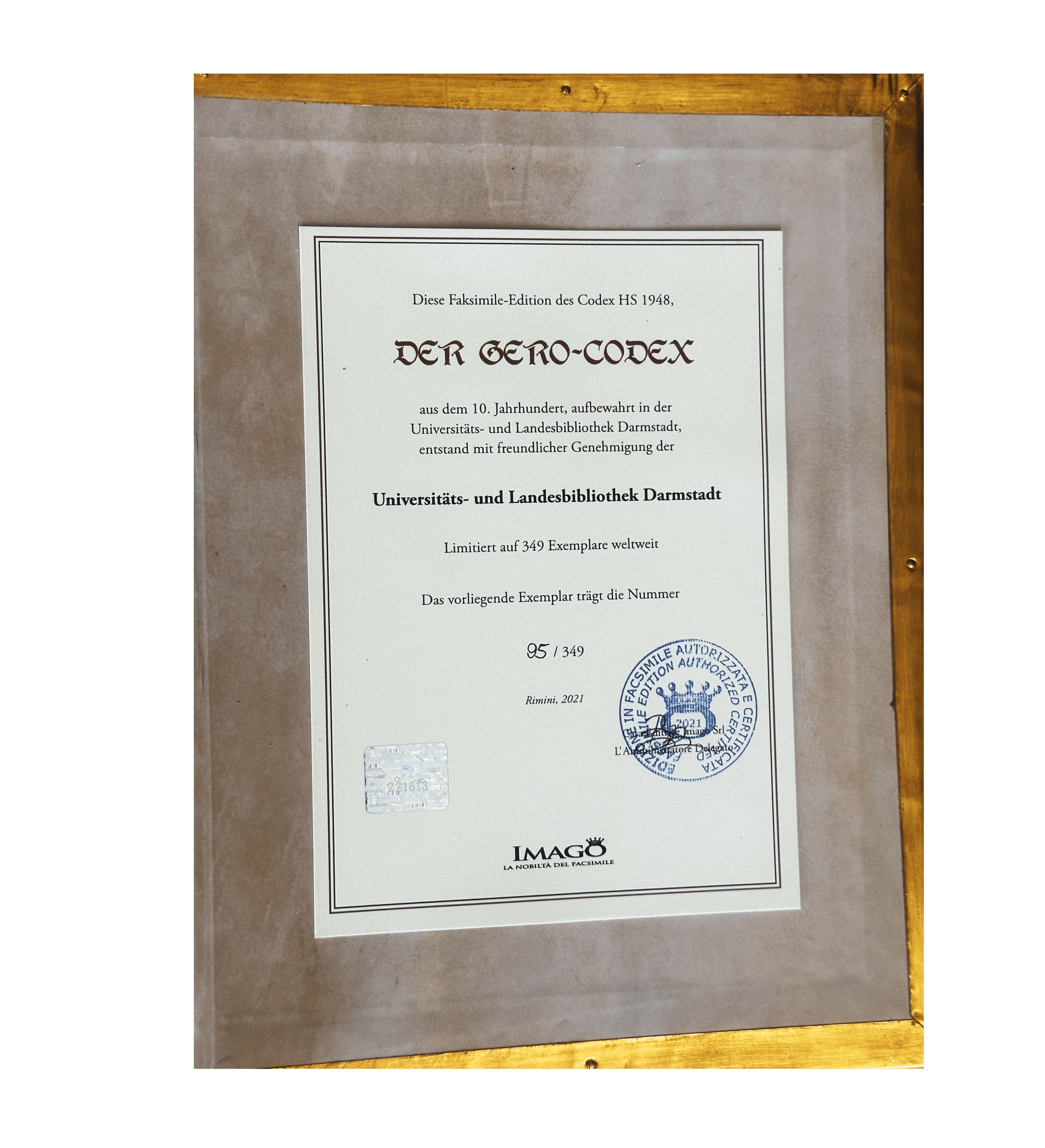 Seine Bedeutung wurde 2003 von der UNESCO gewürdigt, die den Gero-Codex in das Weltdokumentenerbe aufnahm. Heute wird diese herausragende Handschrift in der Universitäts- und Landesbibliothek Darmstadt verwahrt.