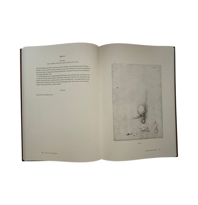 In präzisen Feder- und Silberstiftzeichnungen untersuchte er Muskeln, Knochen, Sehnen und Organe, erfasste den menschlichen Körper als komplexes System und verband naturwissenschaftliche Genauigkeit mit künstlerischer Sensibilität. Die Blätter zeigen Ganzkörperdarstellungen, anatomische Schnitte und Detailstudien – etwa zur Hand, zum Schädel oder zur Lage des ungeborenen Kindes im Mutterleib – und dokumentieren den Übergang von morphologischen zu physiologischen Fragestellungen.