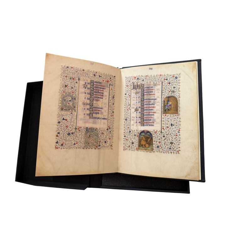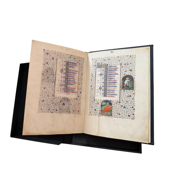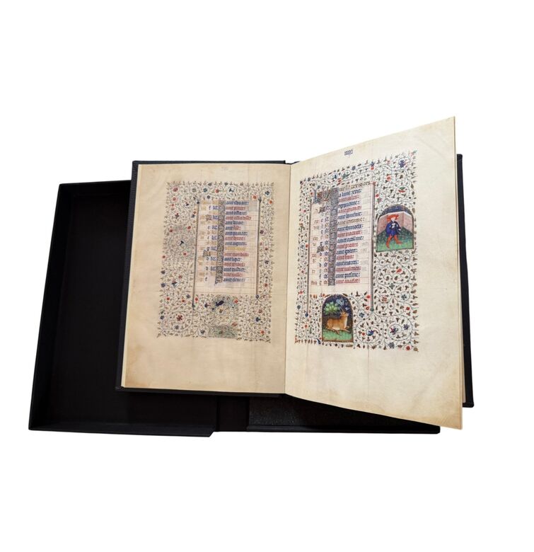 Das goldene Kalendarium ist ein prachtvolles Beispiel spätmittelalterlicher Buchkunst und verbindet astronomisches Wissen mit künstlerischer Strahlkraft. Entstanden im 15. Jahrhundert, präsentiert es die Monate des Jahres in aufwendig illuminierten Szenen, die bäuerliche Arbeiten, höfische Feste und die Zeichen des Tierkreises vereinen. Jede Seite ist reich mit Gold verziert und besticht durch detailreiche Miniaturen, die das Zusammenspiel von Natur, Kosmos und Glauben eindrucksvoll veranschaulichen.