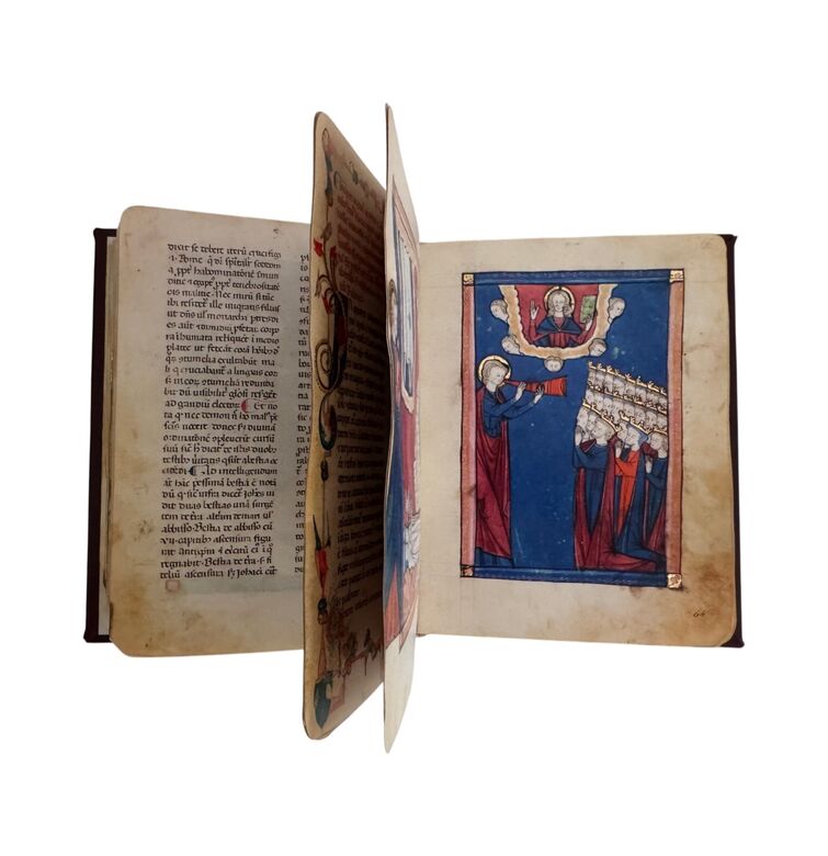 Das Buch der geheimen Offenbarung zählt zu den faszinierendsten Apokalypse-Handschriften des Mittelalters. Zwischen 1276 und 1300 in Metz entstanden, vereint es französische, englische und italienische Einflüsse zu einem stilistisch eigenständigen Werk, das der internationalen Gotik um Jahrzehnte vorausgreift.