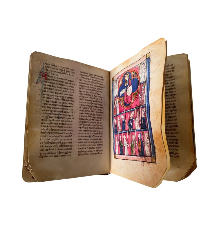 Das Buch der geheimen Offenbarung zählt zu den faszinierendsten Apokalypse-Handschriften des Mittelalters. Zwischen 1276 und 1300 in Metz entstanden, vereint es französische, englische und italienische Einflüsse zu einem stilistisch eigenständigen Werk, das der internationalen Gotik um Jahrzehnte vorausgreift.