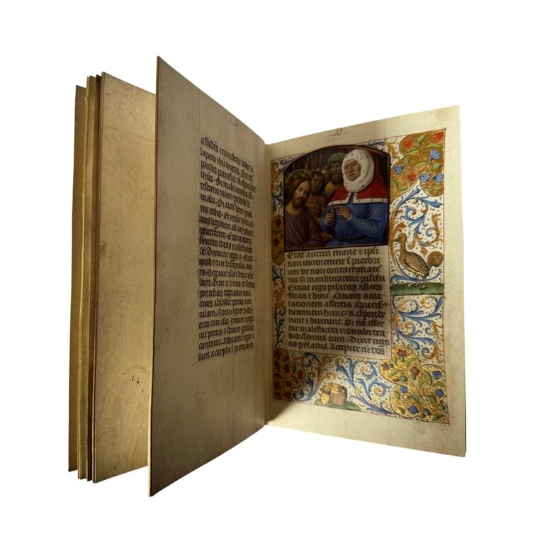 Das Stundenbuch von Montserrat, um 1500 in Rouen entstanden, beeindruckt durch 48 ganzseitige Miniaturen, üppigen Goldschmuck und einen Bilderzyklus, der Maria ins Zentrum stellt.