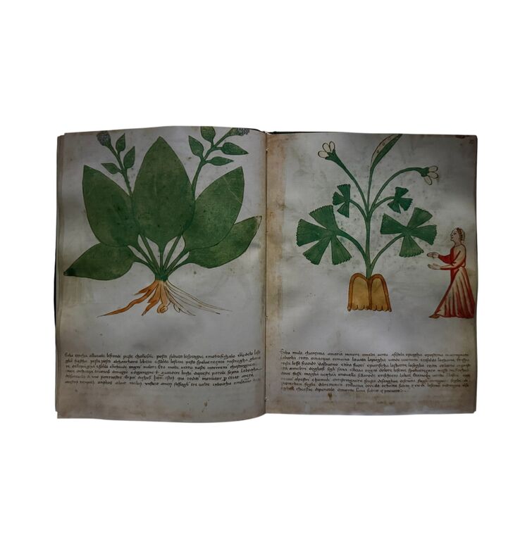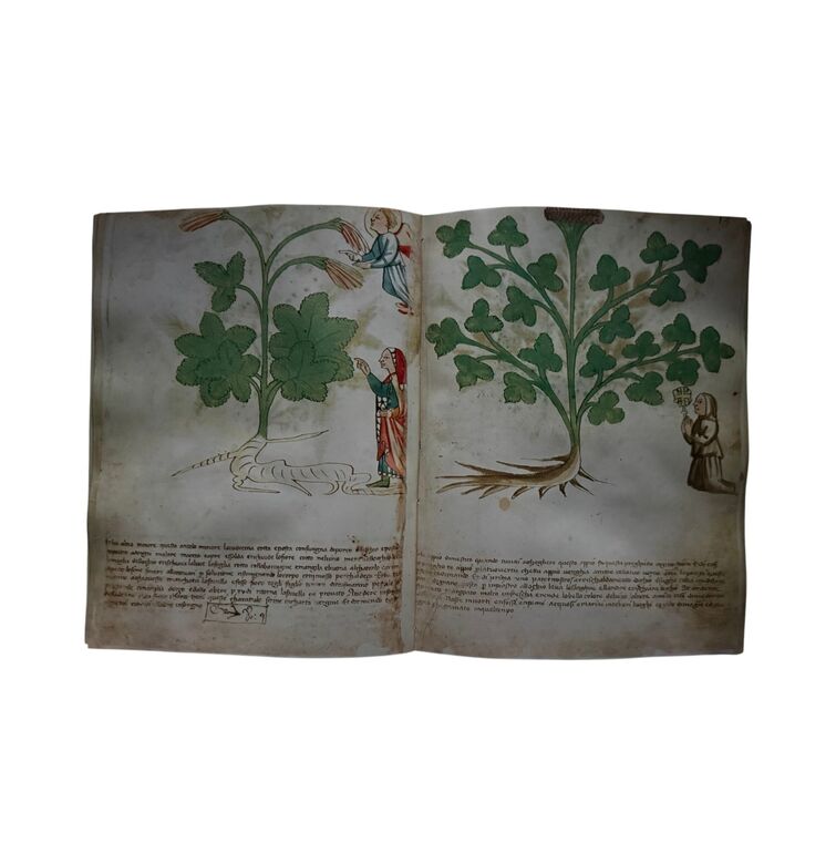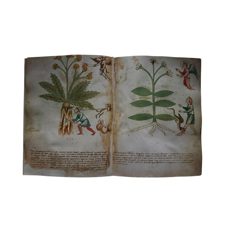 Der Codex umfasst rund 90 botanische Arten, jede mit detailreichen Aquarellen dargestellt. Auffällig sind die fantasievollen Begleitfiguren: Menschen, Tiere, Fabelwesen oder Dämonen, die die Wirkungen und Anwendungsbereiche der Pflanzen versinnbildlichen. Damit öffnet sich ein einzigartiger Kosmos, in dem Wissenschaft, Mystik und Bildkunst verschmelzen.