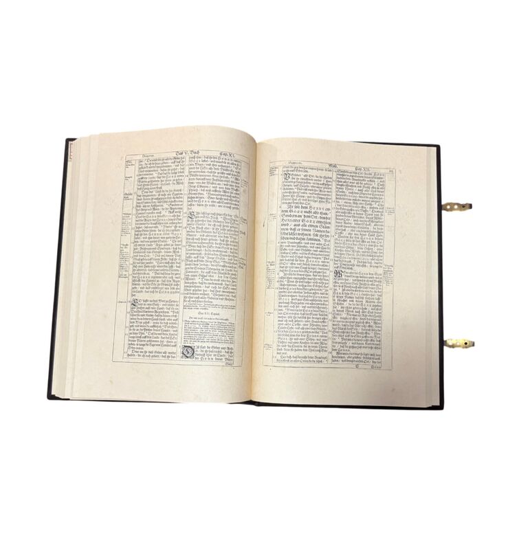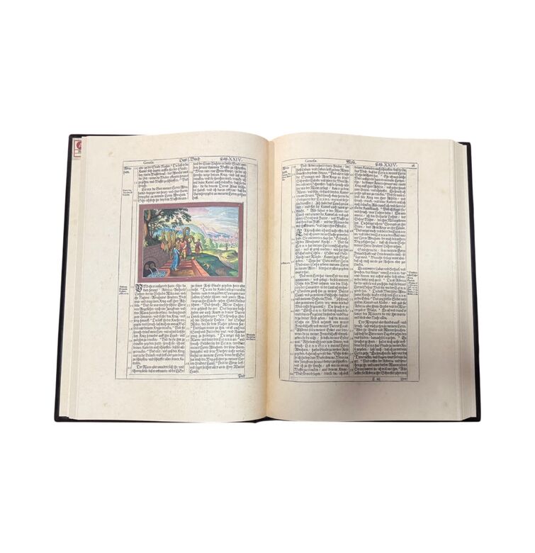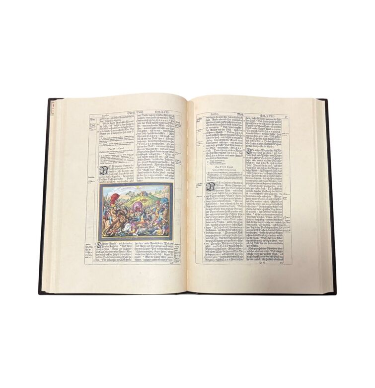 Die sogenannte Kupferbibel des Matthäus Merian d. Ä. (1593–1650) zählt zu den herausragendsten Bibelausgaben der Barockzeit. Der 1630 in Straßburg erschienene Band des Alten Testaments verbindet den in eleganter Frakturschrift gedruckten deutschen Text mit einer außergewöhnlichen Folge von 157 meisterhaft kolorierten Kupferstichen. Diese Darstellungen biblischer Szenen zeigen Merians unvergleichliche Kunstfertigkeit, die Feinheit seiner Linienführung und seine Fähigkeit, Bewegung, Licht und Raum in Kupfer zu bannen.