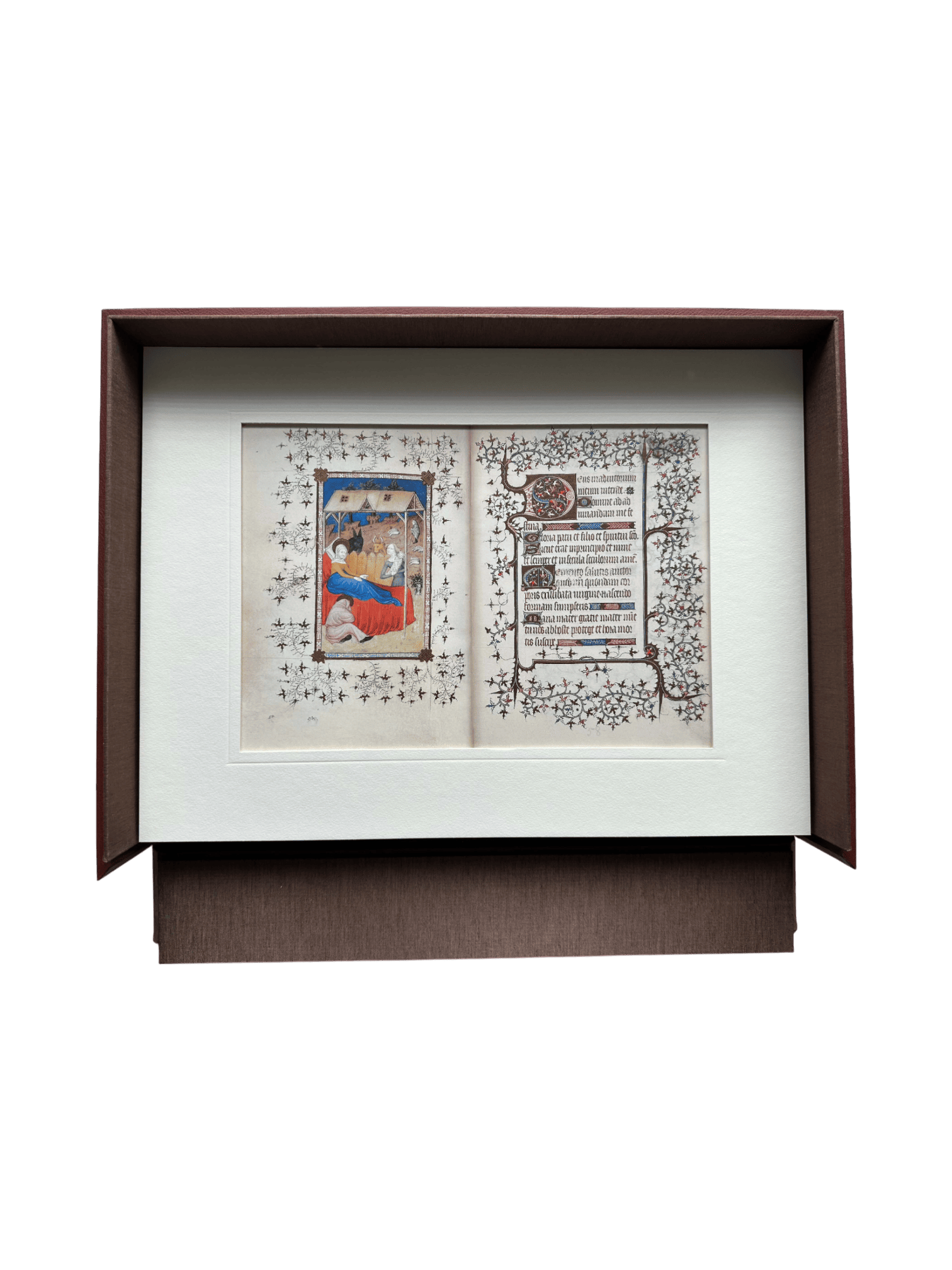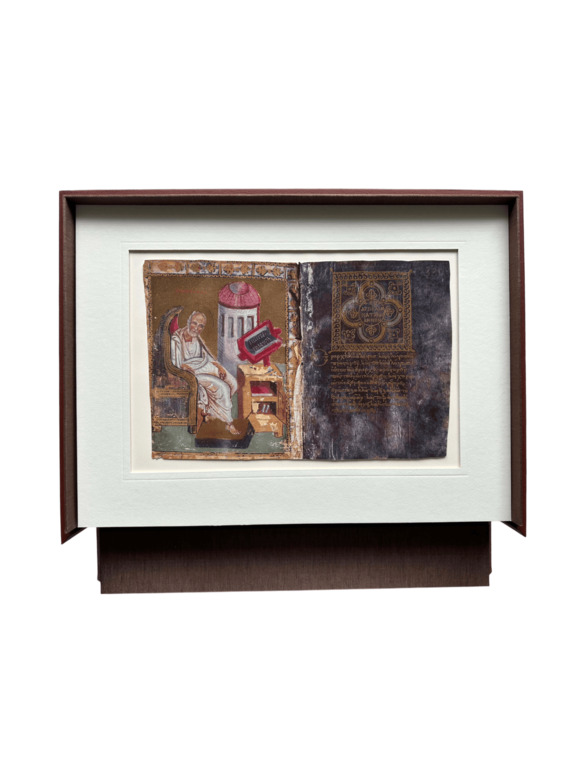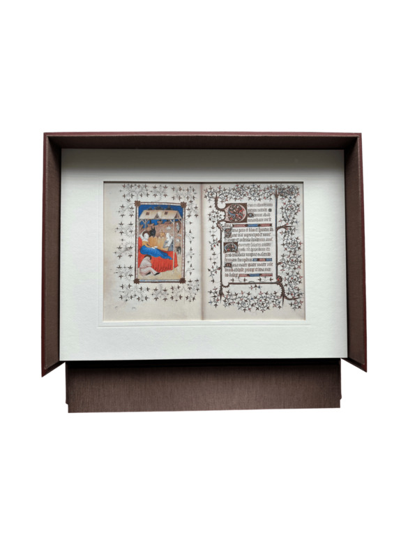 Zu den gezeigten Blättern gehören das Purpur-Evangelium aus Byzanz (9.–17. Jahrhundert), Miniaturen aus französischen Stundenbüchern und Missalien des 13.–15. Jahrhunderts, ein Blatt aus dem Stundenbuch der Maria Stuart, ein Briefwechsel zwischen Anna von Bretagne und Ludwig XII., eine persische Miniatur des 16. Jahrhunderts sowie eine Darstellung des Solowjetski-Klosters von 1623.