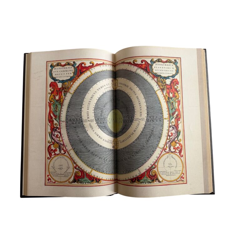 Der 1661 veröffentlichte Atlas Harmonia Macrocosmica des Astronomen, Mathematikers und Kartografen Andreas Cellarius (um 1596–1665) zählt zu den eindrucksvollsten Himmelsatlanten des Barock. In 29 doppelseitigen, meisterhaft kolorierten Kupferstichen entfaltet sich ein umfassendes Bild des Kosmos, das die Weltsysteme von Ptolemäus, Kopernikus und Tycho Brahe vereint und zugleich die Entwicklung des astronomischen Weltbildes veranschaulicht. Die Tafeln, gestochen von Frederik Hendrik van den Hove, Jan van Loon und Jan Pieterszoon Saenredam, verbinden wissenschaftliche Präzision mit künstlerischer Pracht und gehören zu den schönsten Beispielen barocker Druckkunst.