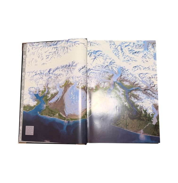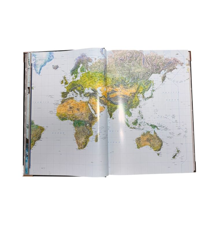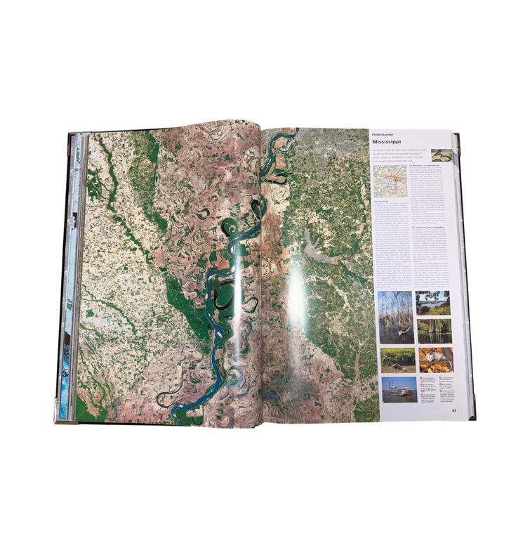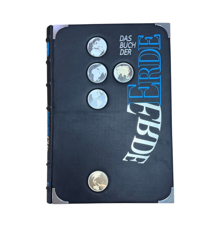 Die prachtvolle Ausstattung des Bandes unterstreicht seinen repräsentativen Charakter: geprägter Einband in Schwarz mit silbernen Reliefs der Weltkugeln, Metallecken und Titelprägung in Silber und Blau. Das Werk verbindet wissenschaftliche Genauigkeit mit visueller Ausdruckskraft und dokumentiert den Wissensstand über unseren Planeten im späten 20. Jahrhundert – ein repräsentatives Beispiel populärwissenschaftlicher Buchkunst jener Zeit.