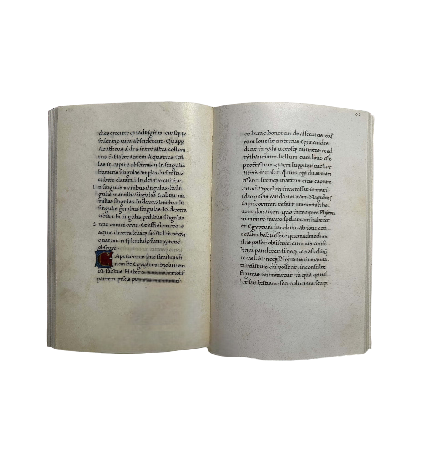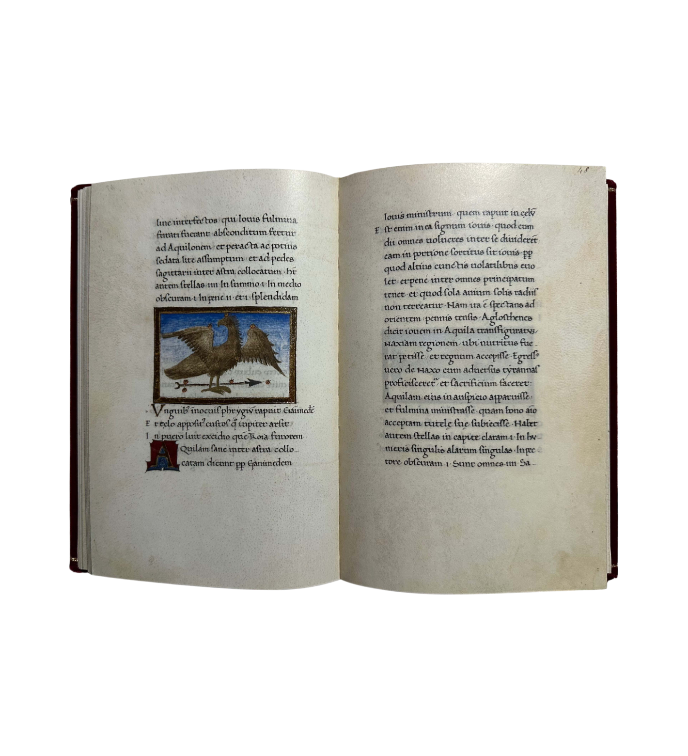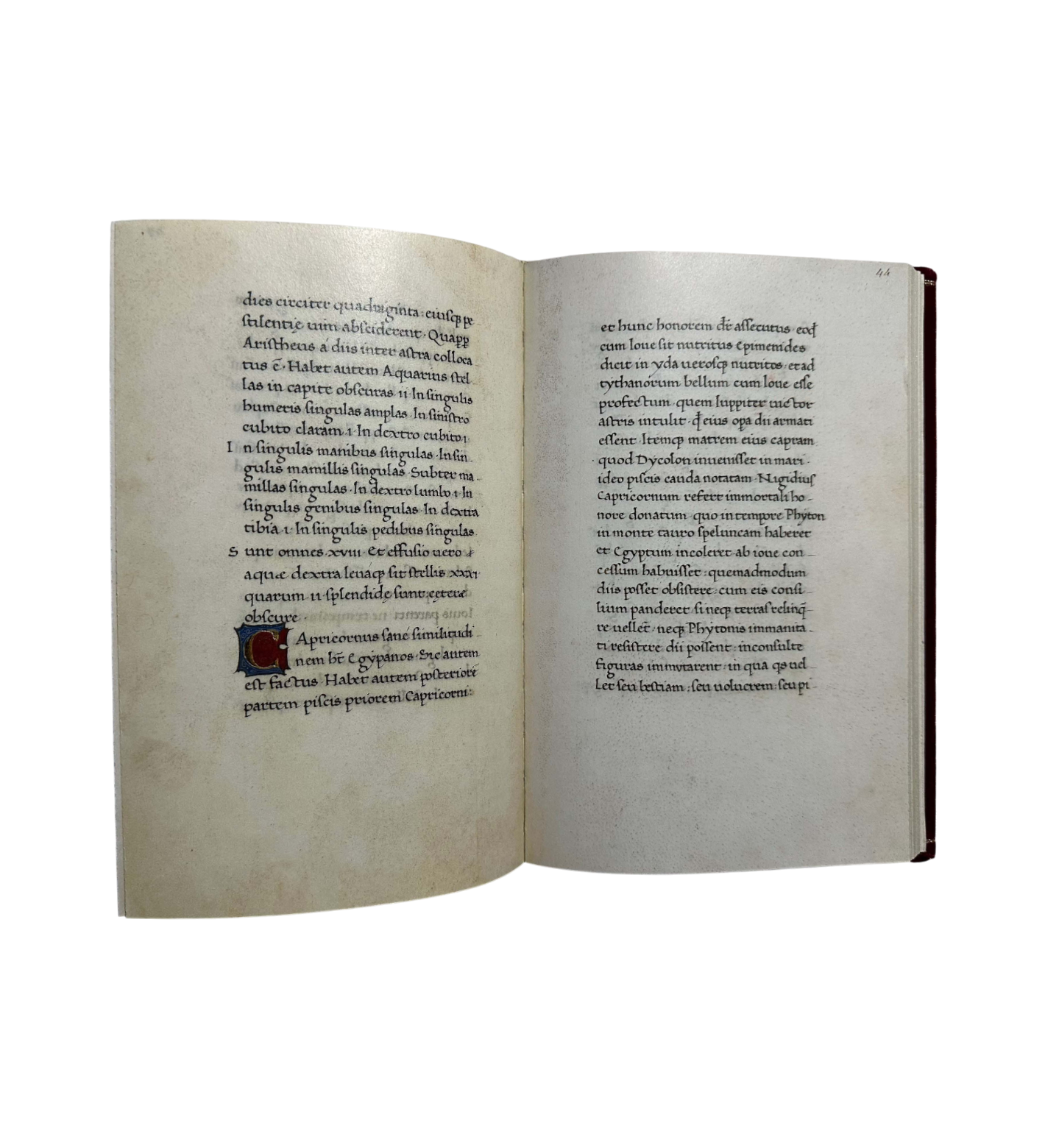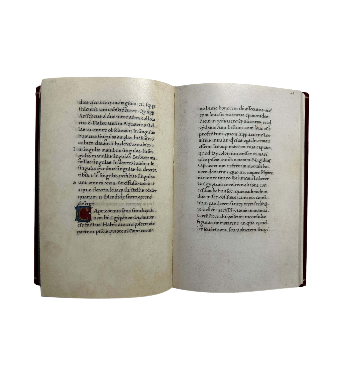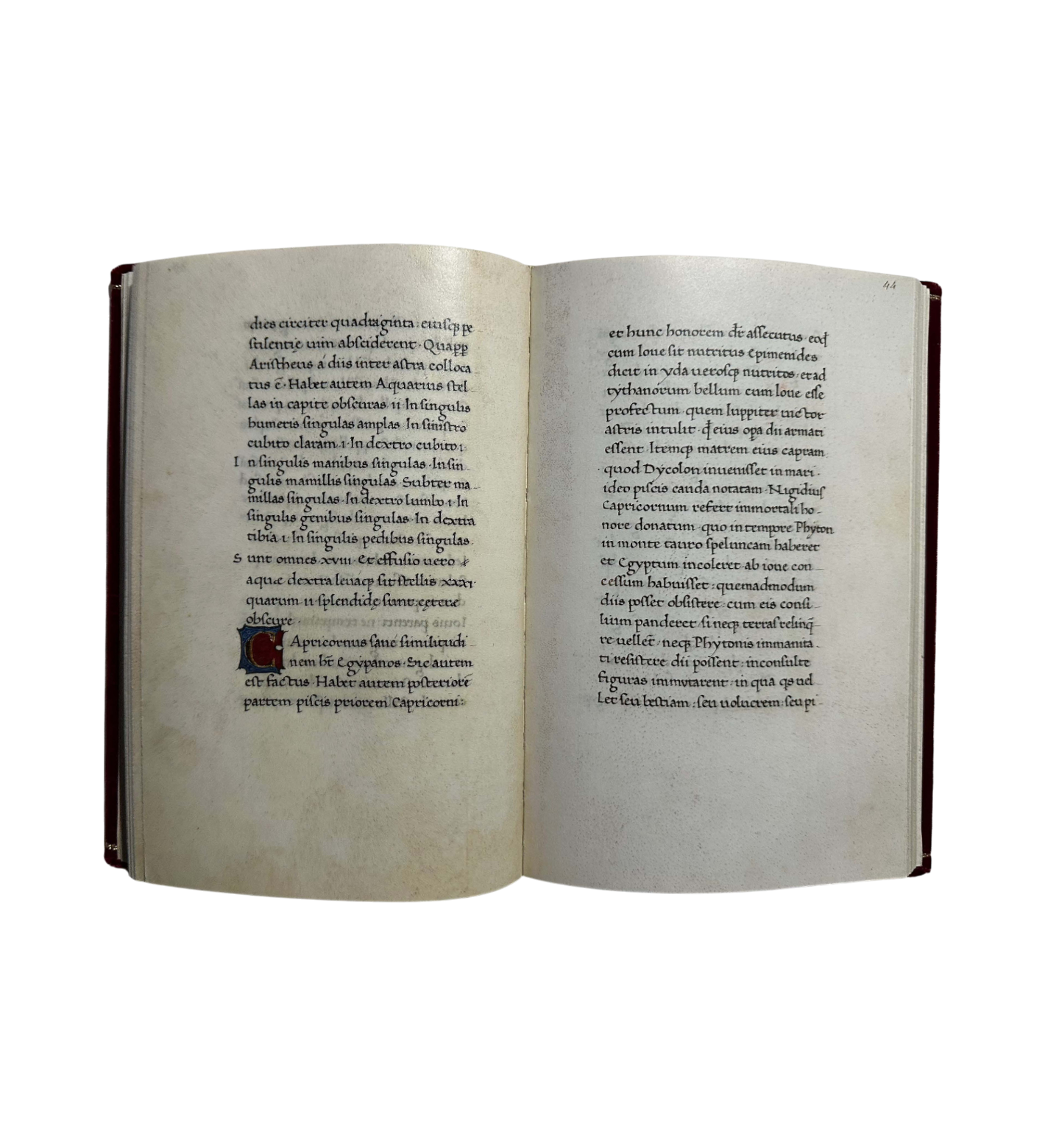 Grundlage bildet das Lehrgedicht Phainomena des Aratos von Soloi (ca. 310–245 v. Chr.), überliefert in der lateinischen Prosa-Fassung des Germanicus. Die Texte werden ergänzt durch Plinius’ Naturalis historia und Hyginus’ De Astronomia. In meisterlich illuminierter Form erscheinen Planeten, Sternbilder und Himmelsphänomene, die durch mythologische Figuren anschaulich erklärt werden. Besonders eindrucksvoll ist die Planisphäre mit der Gesamtdarstellung des Firmaments.