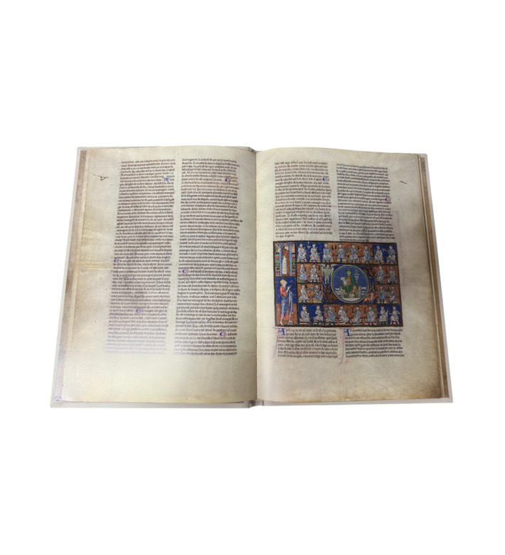 Vier Künstler, zwei noch im linearen englisch-romanischen Stil, zwei bereits im französisch-gotischen Stil arbeitend, schufen 71 Miniaturen mit über 100 Einzelbildern, reich verziert mit Gold, kräftigem Rot und tiefem Blau. Die Visionen der Offenbarung des Johannes – Katastrophen, Engel, apokalyptische Bestien – erscheinen in einer Bildsprache von überwältigender Eindringlichkeit.