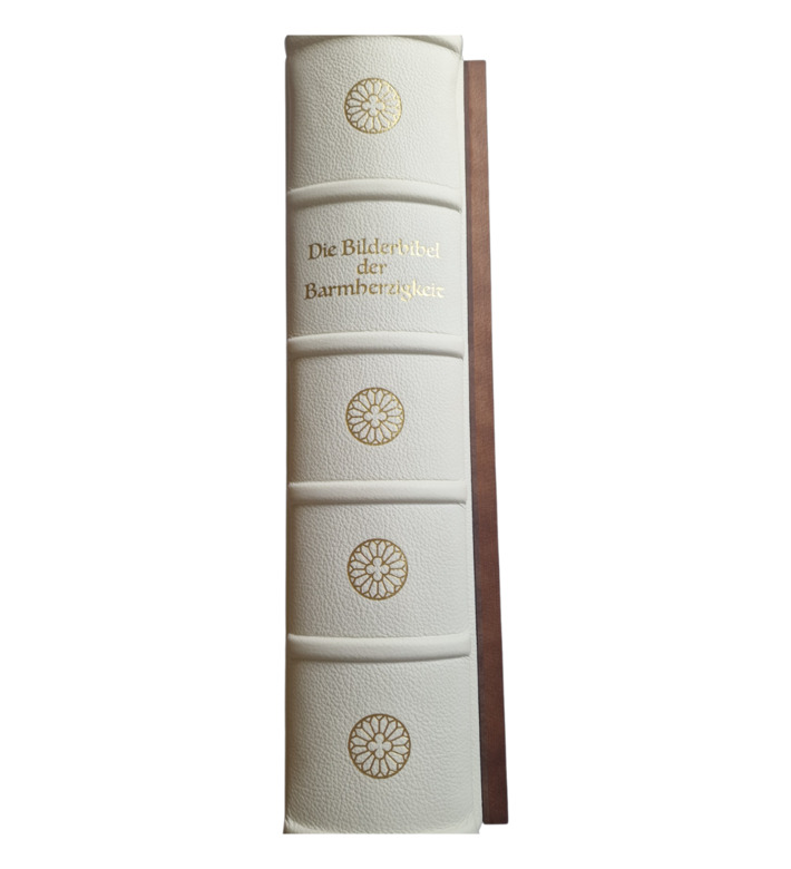Anlässlich des von Papst Franziskus ausgerufenen Heiligen Jahres der Barmherzigkeit 2016 entstand eine außergewöhnliche Bilderbibel, die heute als eine der schönsten Bibelausgaben des 21. Jahrhunderts gilt. Auf 1024 Seiten vereint sie den vollständigen Text des Alten und Neuen Testaments in deutscher Sprache mit über 350 Miniaturen, von denen 270 mit echtem Blattgold versehen sind.