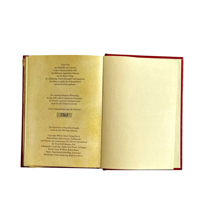 Mit acht goldgeschmückten Miniaturen, zahlreichen verzierten Initialen und dem berühmten Dedikationsbild, das Mathilde thronend vor purpurnem Hintergrund zeigt, verbindet die Handschrift geistliche Würde mit höfischer Repräsentation. Sie gilt als ein Höhepunkt der weltlichen romanischen Buchmalerei und als eindrucksvolles Zeugnis weiblicher Macht und Frömmigkeit im Mittelalter.
