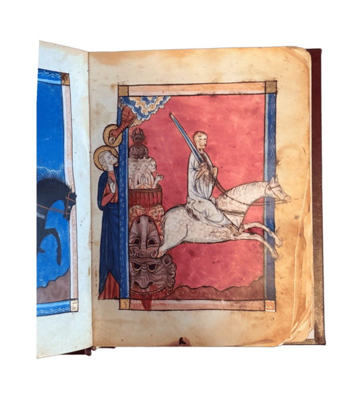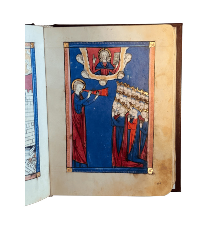 Das Buch der geheimen Offenbarung zählt zu den faszinierendsten Apokalypse-Handschriften des Mittelalters. Zwischen 1276 und 1300 in Metz entstanden, vereint es französische, englische und italienische Einflüsse zu einem stilistisch eigenständigen Werk, das der internationalen Gotik um Jahrzehnte vorausgreift.