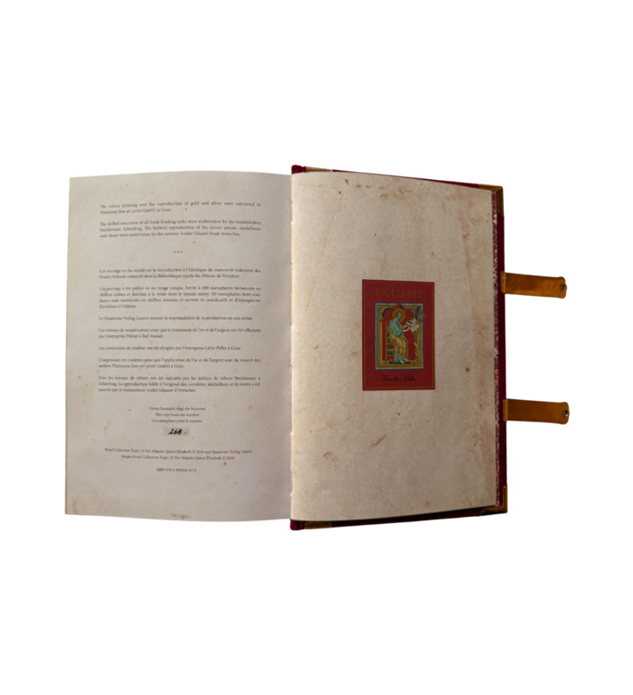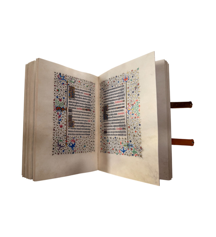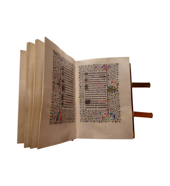Das Sobieski-Stundenbuch wurde um 1420 von Margarete von Burgund in Auftrag gegeben, vermutlich anlässlich ihrer Hochzeit mit Arthur III., Herzog der Bretagne. Mit 468 Pergamentseiten, 60 ganzseitigen Miniaturen, über 400 Einzelszenen und unzähligen Prachtinitialen zählt es zu den bedeutendsten Handschriften der französischen Spätgotik. An der Ausstattung wirkten mehrere der großen Pariser Meister: der Bedford-Meister, der Fastolf-Meister und der Meister der Münchner Legenda Aurea. Ihre Darstellungen verbinden erzählerische Fülle mit künstlerischer Harmonie. Die Miniaturen entfalten biblische Szenen wie eine Bildergeschichte, reich an Landschaftspanoramen und architektonischen Fantasien. Damit ist das Stundenbuch nicht nur ein Dokument höfischer Kultur des 15. Jahrhunderts, sondern zugleich ein herausragendes Zeugnis gemeinschaftlicher Buchkunst, das die Virtuosität gleich mehrerer führender Werkstätten seiner Zeit bündelt.