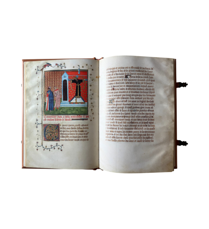 Die Handschrift umfasst 27 leuchtend kolorierte Miniaturen, die in ihrer Komposition und Farbgebung zu den Meisterwerken der französischen Gotik zählen. Goldgrund, ornamentale Initialen und feinste Details verleihen den Szenen besondere Ausdruckskraft.