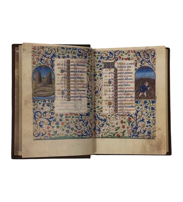 In den 1470er Jahren entstand in Paris das Moskauer Stundenbuch, eine der prachtvollsten Handschriften spätmittelalterlicher Buchkunst. Auf 470 Seiten finden sich 17 großformatige Miniaturen, 24 Kalenderbilder, reiche Bordüren und unzählige Zierinitialen. Rund 200 Seiten sind mit Druckgold versehen, weitere 357 mit 23-karätigem Echtgold, was die Handschrift zu einem überaus kostbaren Zeugnis privater Andacht macht.