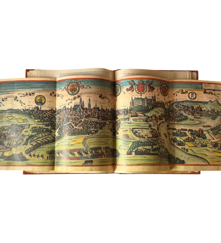 Die Civitates Orbis Terrarum, zwischen 1572 und 1618 in sechs Bänden erschienen, gilt als das bedeutendste Städtebuch der Frühen Neuzeit. Herausgegeben von Georg Braun und gestochen von Frans Hogenberg sowie später von Simon van den Neuwel, vereint das monumentale Werk über 600 Stadtansichten und -pläne aus Europa, Asien, Afrika und Amerika – ein Weltbild im Zeitalter der Renaissance.