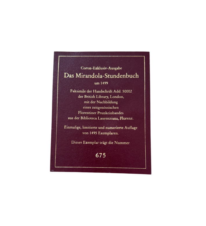 Das nach der Stadt Mirandola benannte Stundenbuch entstand zwischen 1496 und 1499 in Mantua oder Ferrara und gehört zu den Meisterwerken der italienischen Renaissance-Buchmalerei. Auftraggeber war Galeotto Pico I. (1442–1499), Herr von Mirandola.