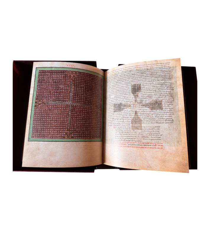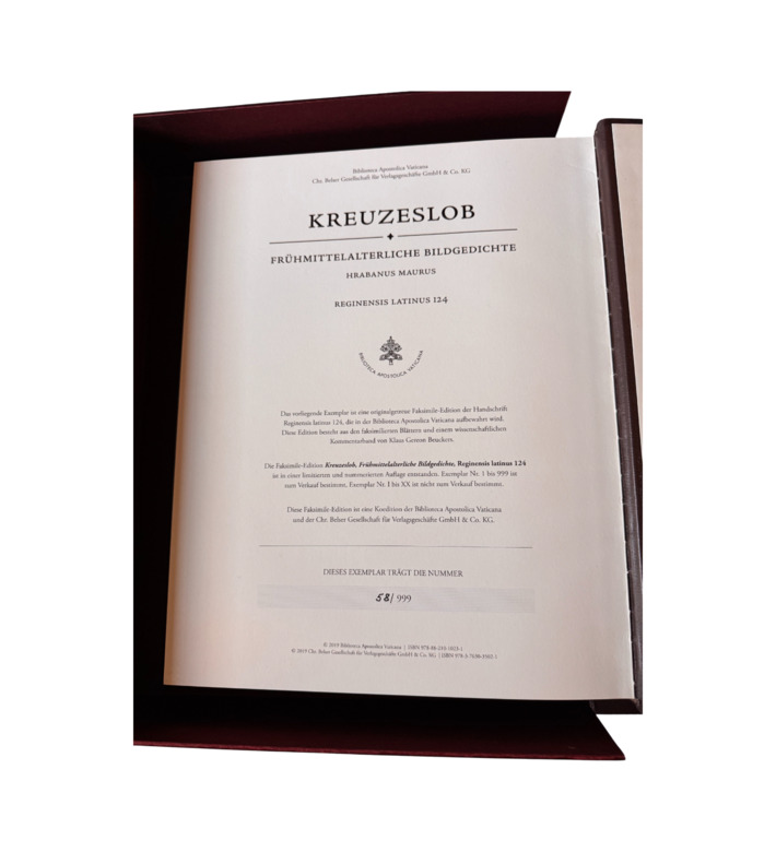 Das prachtvollste erhaltene Exemplar entstand um 825 im Kloster Fulda, wurde Erzbischof Otgar von Mainz gewidmet und befindet sich heute in der Biblioteca Apostolica Vaticana (Reg. Lat. 124). Mit farbigen Seiten und geometrischer Präzision ist es ein Höhepunkt karolingischer Buchkunst und spiritueller Dichtung.