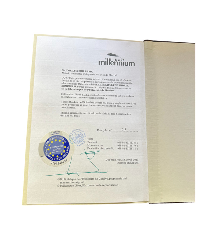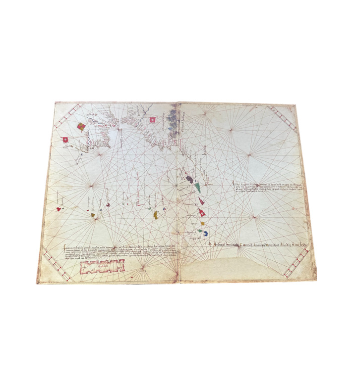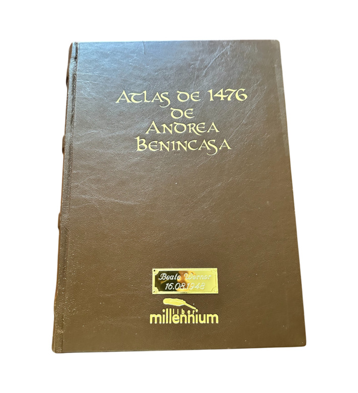 Der Atlas des Andrea Benincasa aus dem Jahr 1476 gehört zu den bedeutendsten kartographischen Werken des 15. Jahrhunderts. Der in Ancona tätige Kartograph entstammte einer berühmten Familie von Seekartenherstellern und verband in seinem Werk präzise nautische Kenntnis mit künstlerischer Raffinesse. Der Atlas umfasst fünf kostbare Portolankarten, die das Mittelmeer, das Schwarze Meer und den Atlantik in beeindruckender Detailfülle darstellen.