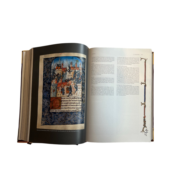 Die Illustrationen stammen aus mehr als 40 berühmten Handschriften aus zehn Jahrhunderten Buchmalerei – darunter das ottonische Strahov-Evangeliar, der romanische Albani-Psalter, die gotische Hamilton-Bibel oder die prachtvolle Renaissance-Bibel des Federico da Montefeltro. Durch diese Vielfalt bildet die Ausgabe ein beeindruckendes Panorama der christlichen Kunstgeschichte.